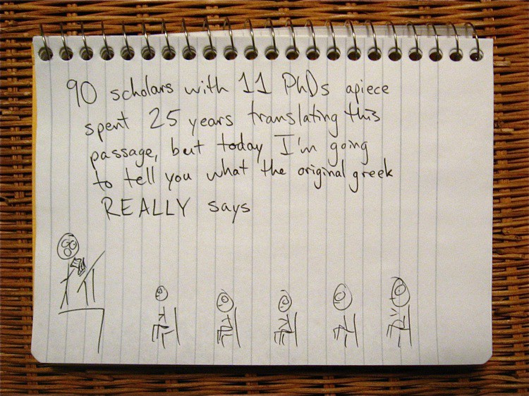 It is true that no scholar, even conservative evangelical scholars, operates without a personal bias. Even the best scholars can be wrong at times. Therefore, one should not take the message of the comic to mean that the average person, without a PhD, should never be able to make their own informed decisions, when reading the biblical text, in order to understand its meaning.