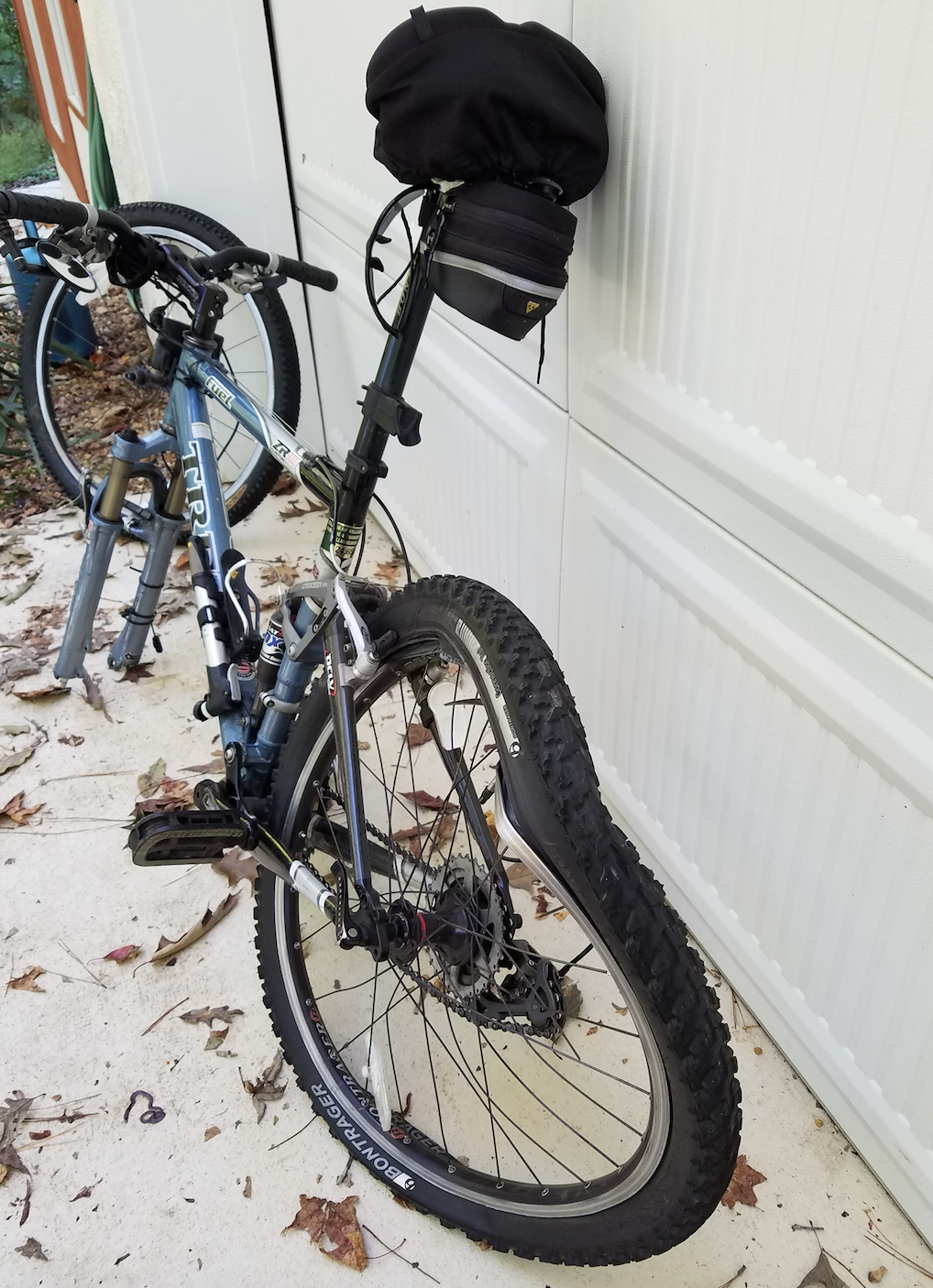 The EMT guy told me that I was rear-ended by a car, and that I flipped back and smashed into the windshield of the vehicle, with my bike helmet, with my head still in the helmet! Later that day, the police dropped off my bike (the photo above) at my house, where you can see how my rear wheel got folded up by the impact.