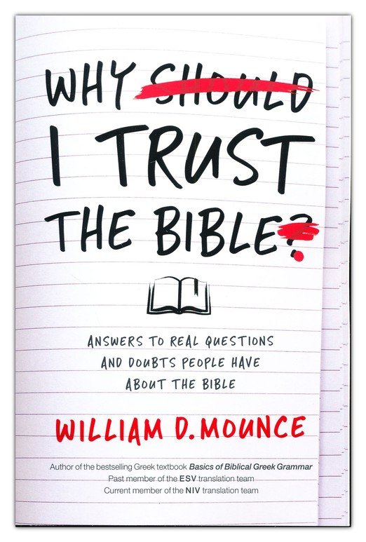 • Why I Trust the Bible: Answers to Real Questions and Doubts People Have about the Bible, by Bill Mounce. Readable and practical. Dr. Mounce is a senior Bible translator, who has had an enormous impact on both the NIV and ESV bible translations, which are two of the most popular Bible translations available today. This is perhaps the best single volume you can get that addresses common issues faced by Christians today when sharing their faith and their confidence in the Bible.