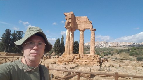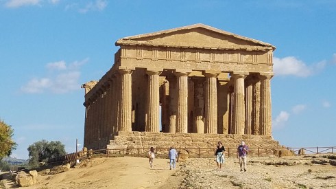 Having a book by a world-class historian at the ready makes for a more enjoyable visit to faraway places. The names of great places in Sicily were sprinkled throughout The Classical World, and I got a chance to see the highlights, and envision a bit of that remarkable ancient world. Take Agrigento for example. In southwest Sicily, the old city of Agrigento sits above an expansive historical park, the Valley of the Temples. On one end of the park stands the Temple of the Discouri.