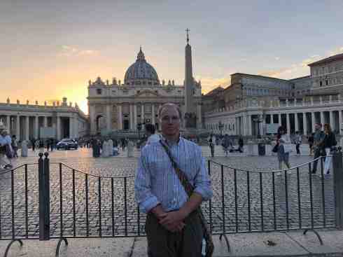 St. Peter’s Square, Vatican City. Behind me stands the obelisk, marking the spot formerly of the Circus of Nero, the first known location of persecution against Christians by a Roman emperor, Nero, in the 60’s C.E.