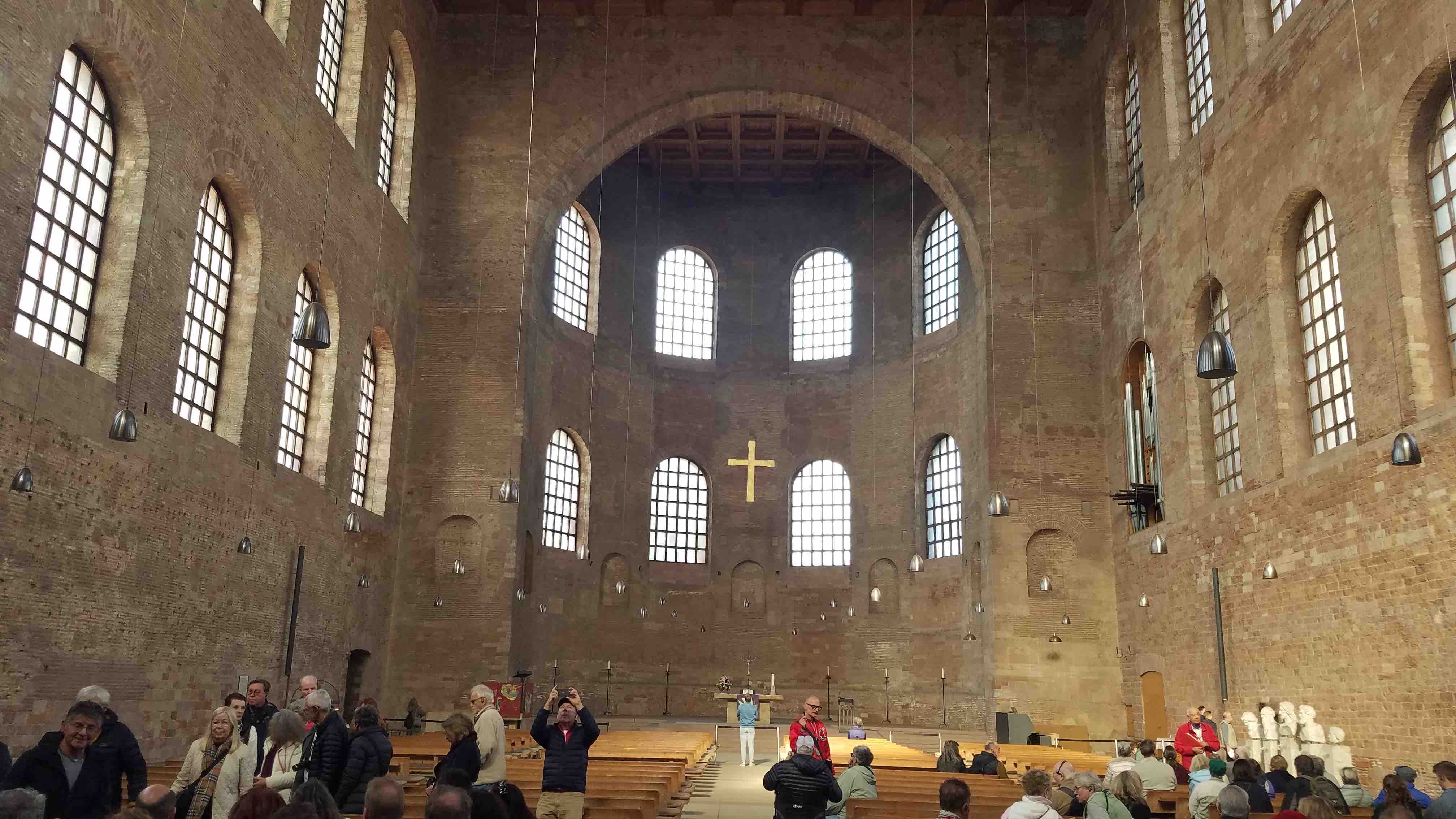 Inside the Basilica of Constantine, which Constantine established in Trier, Germany, in the early 4th century. Part of the brick work in the church has survived since that early Roman period. I could imagine that the Nicene Creed was recited here within a couple hundred years of the Council of Nicaea. My photo from October, 2025.
