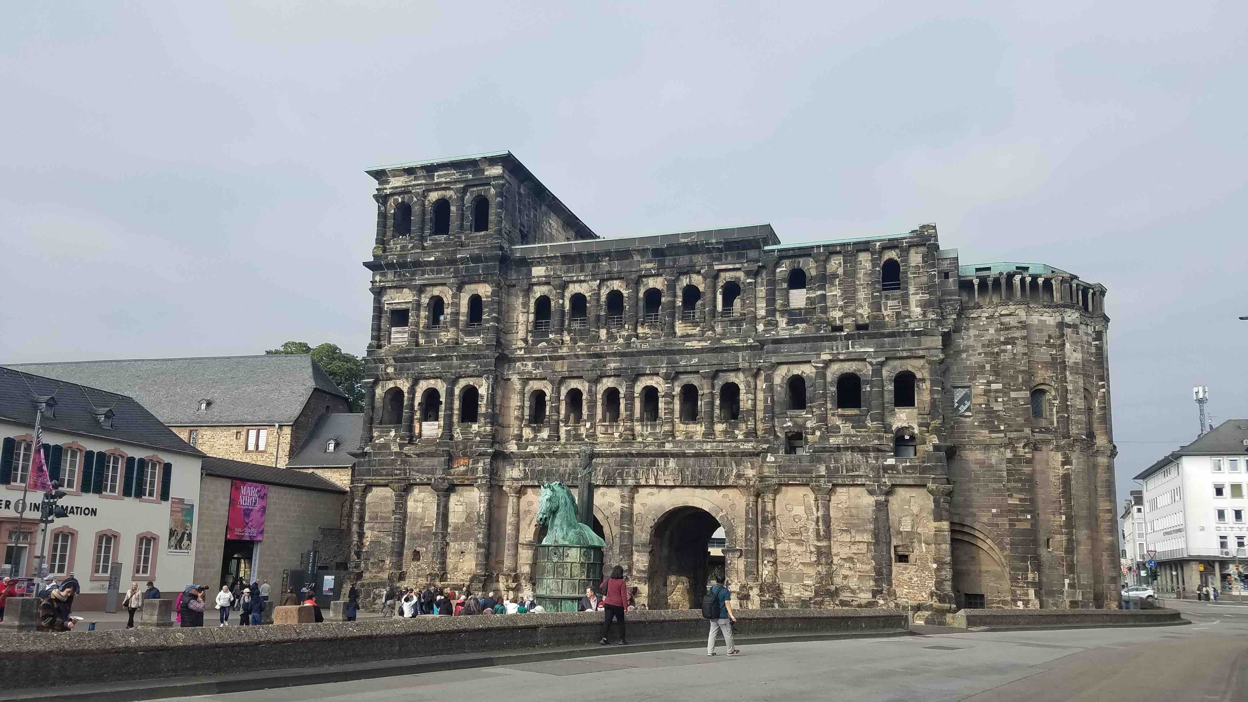 Porta Nigra is one the best preserved Roman gate to the city of Trier, Germany. The gate dates back to 170 CE, before Christianity had thoroughly spread across the Roman Empire. My photo from October, 2025.  The link here is a then-and-now shot comparing the World War 2 look with today.