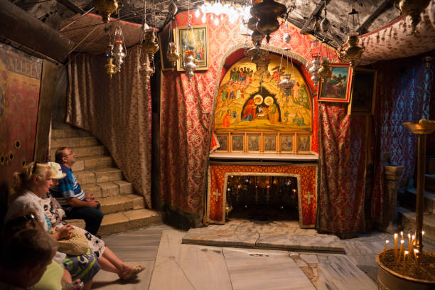 Bethlehem, West Bank, Palestine – July 23, 2013: People gather to pray and reflect at the Grotto of the Nativity, the birthplace of Jesus inside the Church of the Nativity in Bethlehem, Palestine.