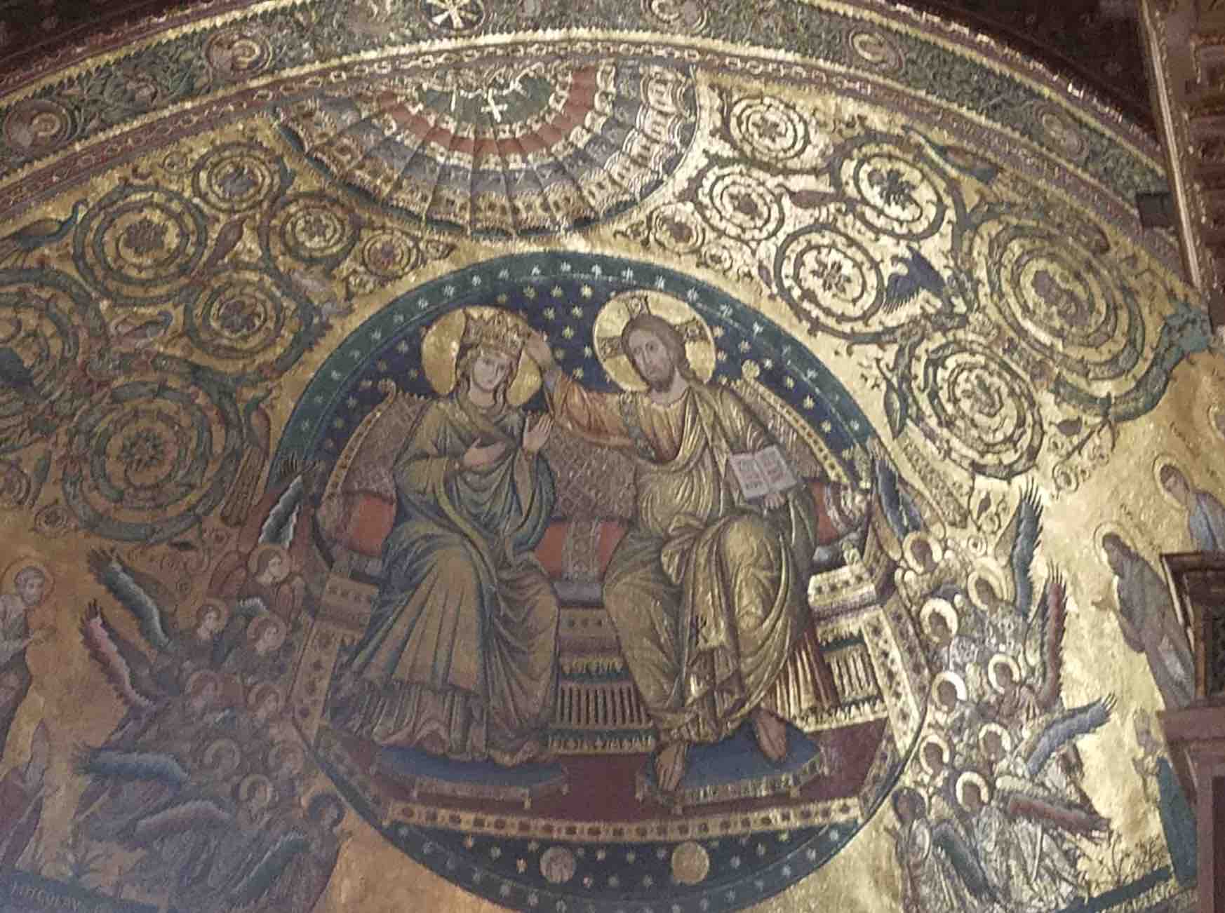 I took this photo in 2018 of the “Coronation of Mary” at Santa Maria Maggiore, showing Jesus crowning Mary. The veneration of Mary has a long, long history.