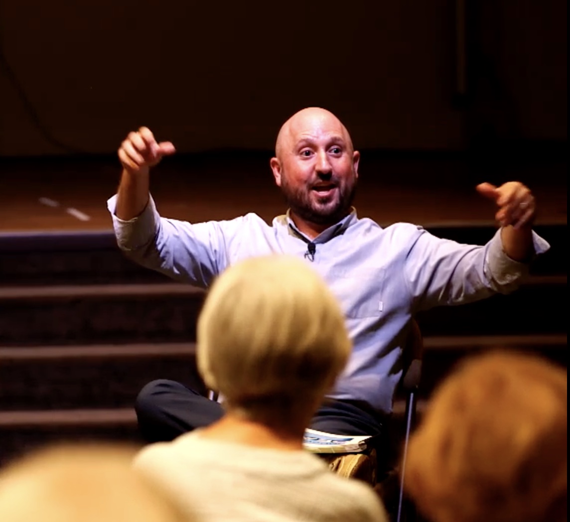 Pastor Travis Simone, leading a book club discussion for his recent D.Min. dissertation entitled Moses Is Dead: Strategies for Pastoral Transition in the summer of 2024, at the Williamsburg Community Chapel.