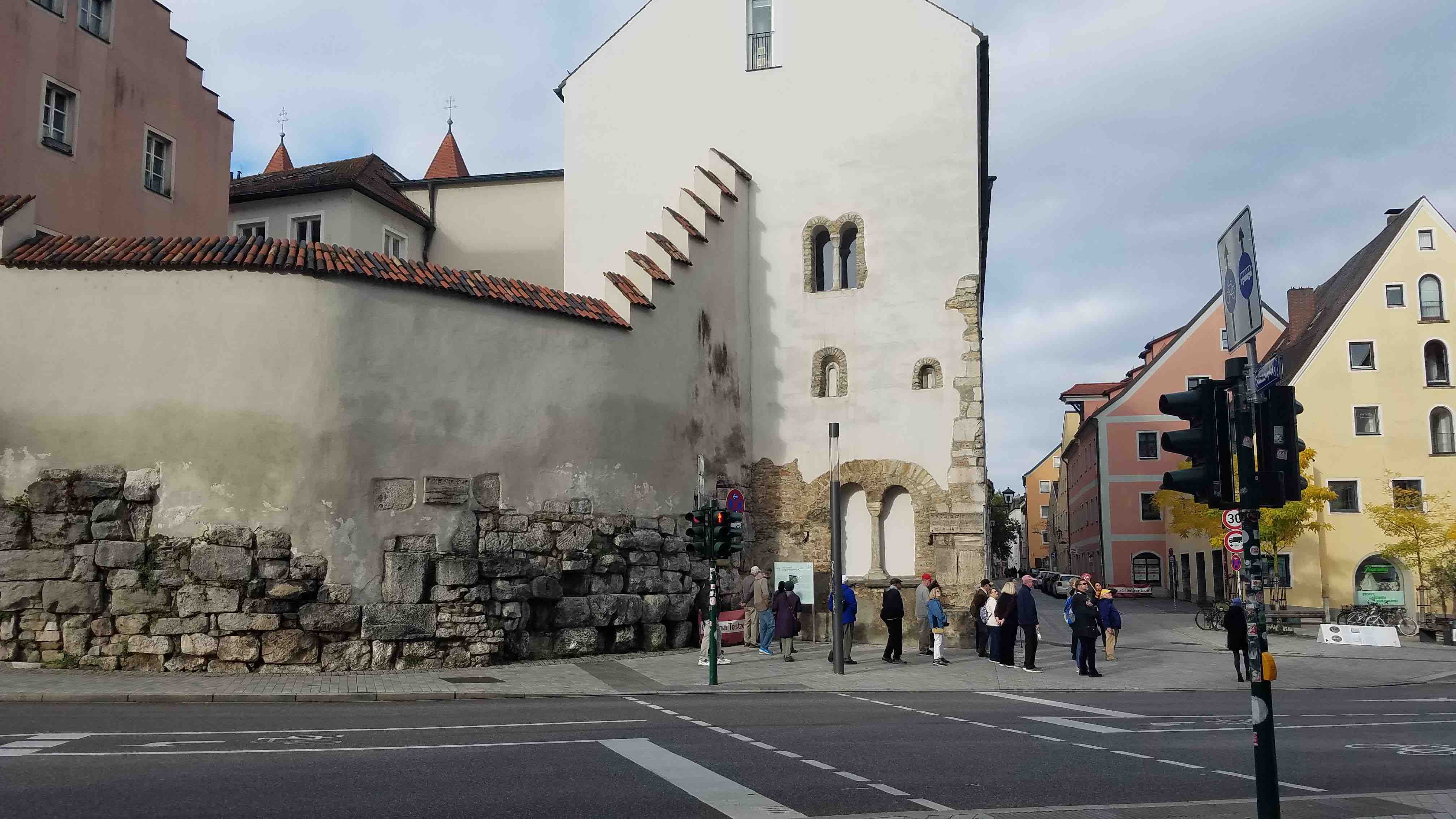 Our tour group walking the streets of Regensburg, Germany. Remnants of the old Roman wall, dating back to the era of Marcus Aurelius, are embedded in various buildings throughout this old and beautiful city.